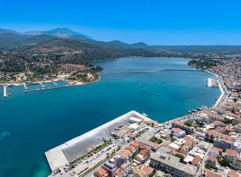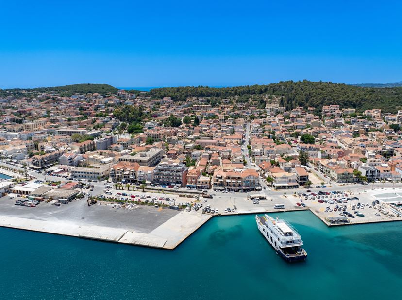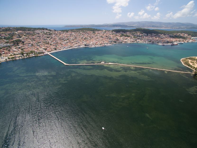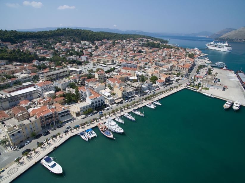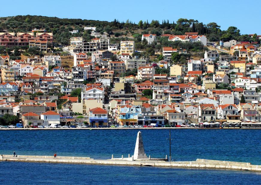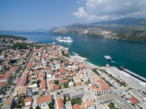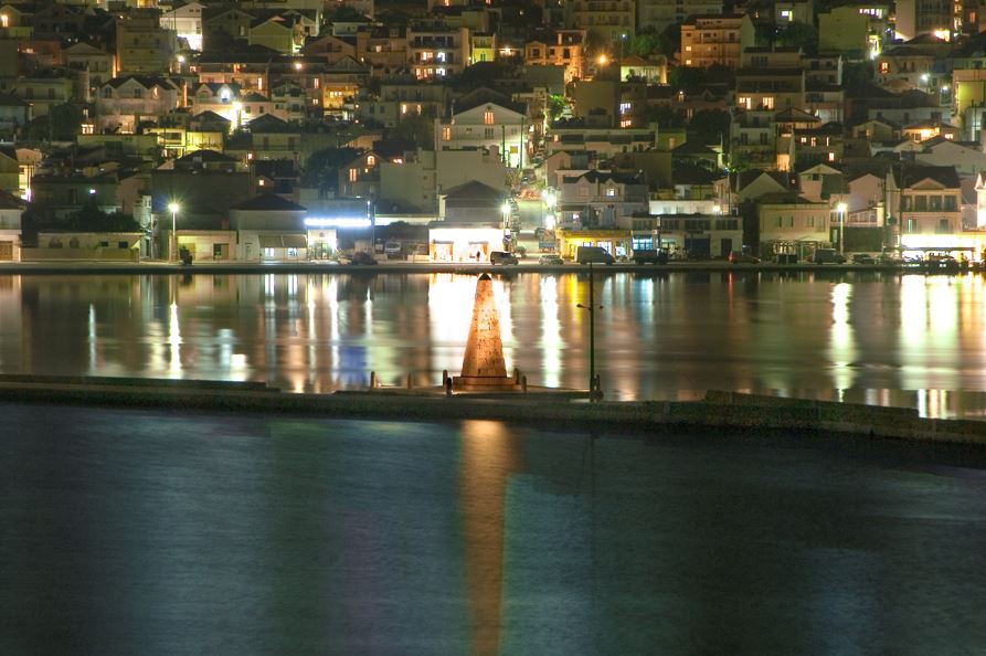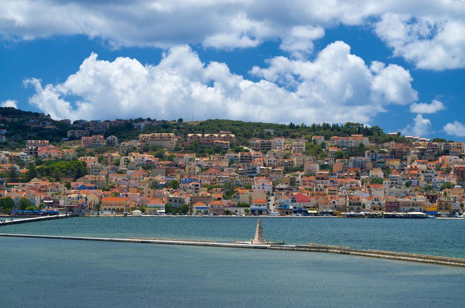 Κατέβα προς την παραλιακή του κόλπου για να δεις το Αργοστόλι όπως γεννήθηκε: λιμάνι και υπηρεσίες γύρω του.