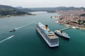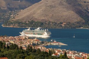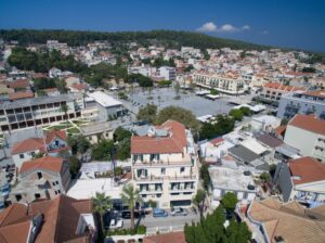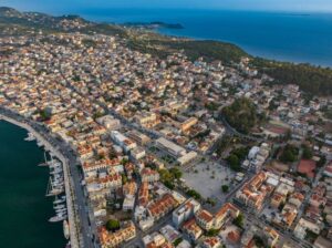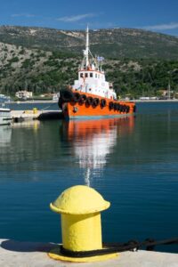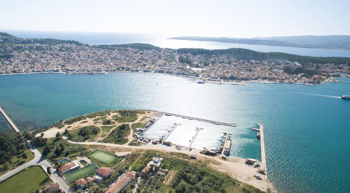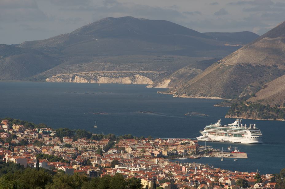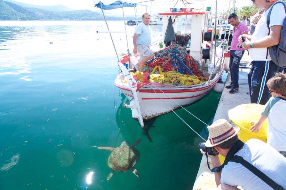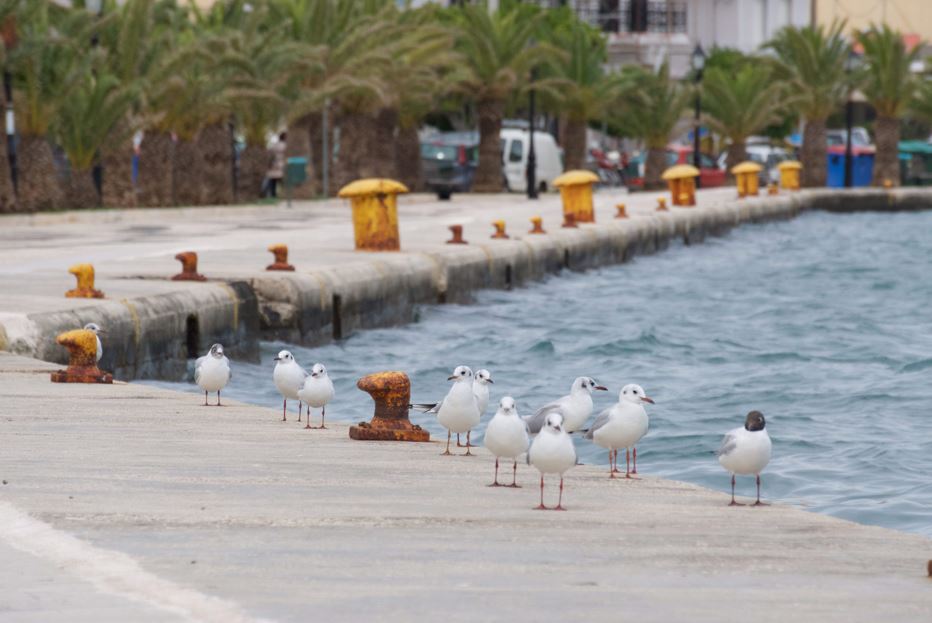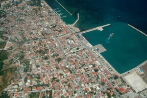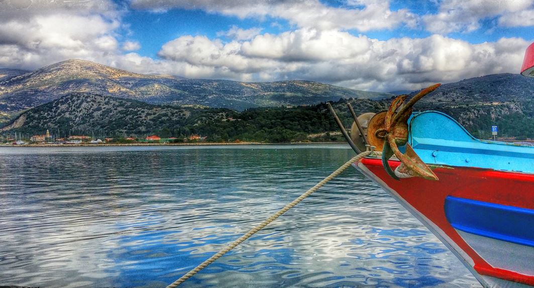 Κατέβα προς την παραλιακή του κόλπου για να δεις το Αργοστόλι όπως γεννήθηκε: λιμάνι και υπηρεσίες γύρω του.
