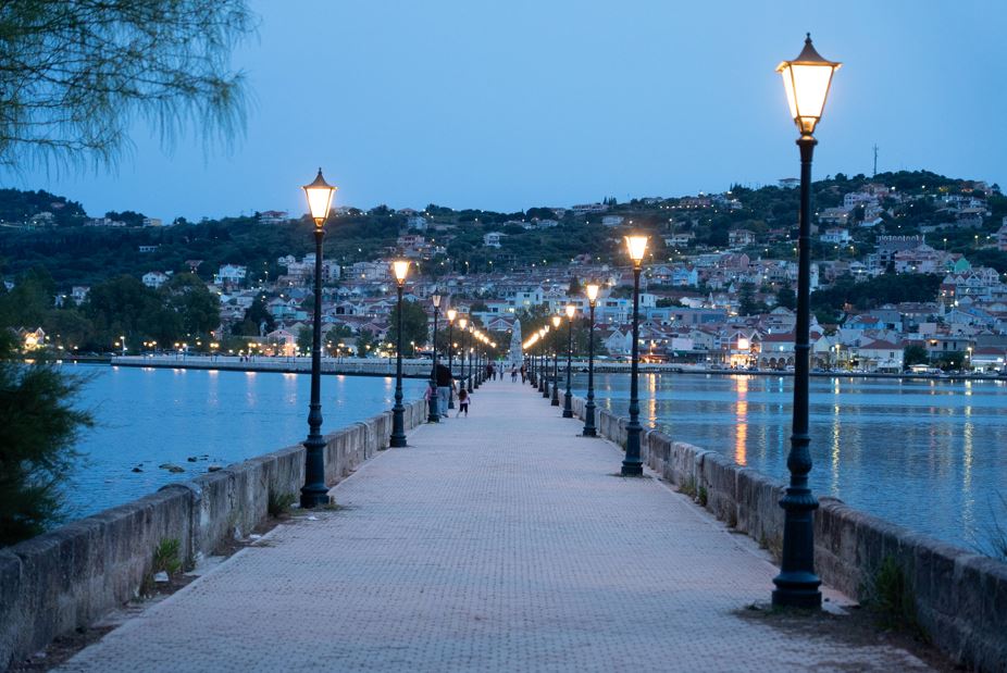 Αν θέλεις να καταλάβεις πραγματικά τη σχέση του Αργοστολίου με το τοπίο, μην το δεις μόνο «από μέσα». Περπάτα τη Γέφυρα Ντε Μποσέ προς τον Κουτάβο και γύρισε πίσω κοιτώντας την πόλη από την απέναντι πλευρά του κόλπου. Εκεί φαίνεται καθαρά γιατί ο προστατευμένος κόλπος έφερε εδώ το εμπόριο, τη διοίκηση και τελικά την ίδια την πρωτεύουσα.