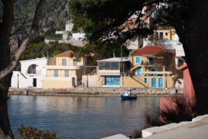 Σκηνή 1 – Το λιμάνι: Ξεκίνα από το νερό. Εκεί καταλαβαίνεις τον “λόγο ύπαρξης” του χωριού. Η μορφή του όρμου εξηγεί γιατί μπορούσε να λειτουργήσει ως φυσικό καταφύγιο για σκάφη.