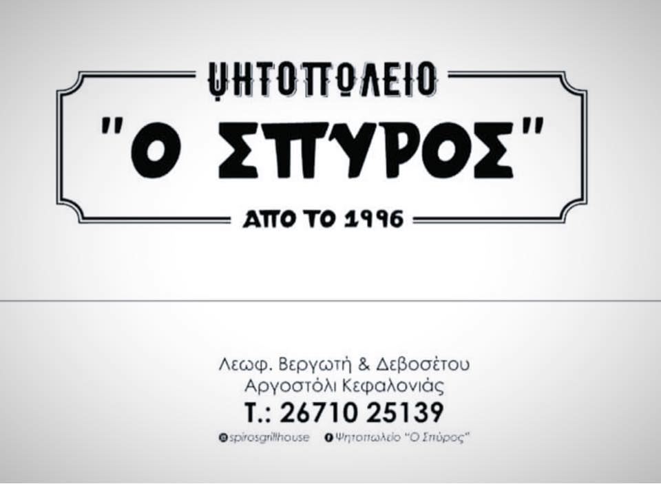 Το Grillhouse Ο Σπύρος βρίσκεται στο Αργοστόλι της Κεφαλονιάς, σε κεντρικό σημείο κοντά στις οδούς Δεβοσέτου και Βεργωτή, έτσι ώστε να το προσεγγίζεις εύκολα με τα πόδια από την αγορά ή την πλατεία. Πρόκειται για κλασικό ψητοπωλείο – ψησταριά, με απλό, λειτουργικό χώρο που δίνει έμφαση στο φαγητό και την γρήγορη εξυπηρέτηση. Τα τραπέζια εξυπηρετούν τόσο για ένα γρήγορο γεύμα όσο και για πιο χαλαρή στάση μέσα στην πόλη.