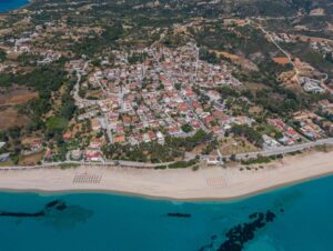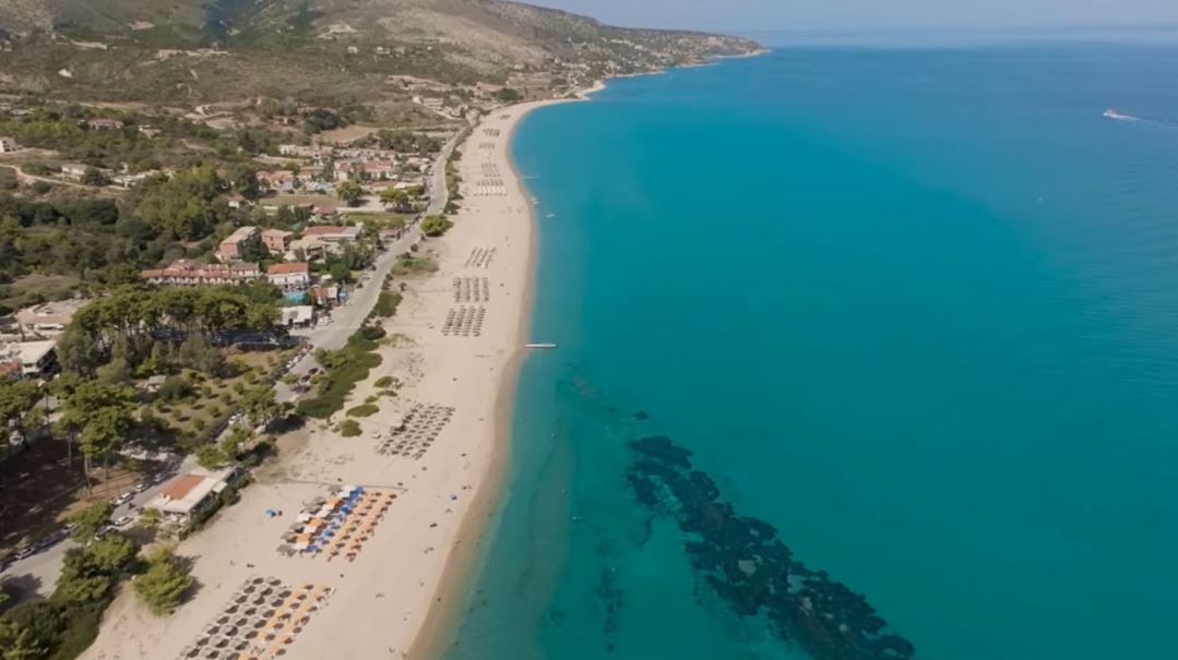 Στη νοτιοανατολική Κεφαλονιά, η Σκάλα απλώνεται σε χαμηλό παραθαλάσσιο μέτωπο. Η ίδια η λέξη “σκάλα” στα ελληνικά κουβαλά τη λογική του σημείου πρόσβασης—ένα πέρασμα, ένα σημείο που “κατεβαίνεις” προς το νερό. Και αυτό ακριβώς είναι: ένας οικισμός που κοιτάει ανοιχτά το Ιόνιο, με μια μεγάλη ακτή μπροστά του και την ενδοχώρα να ανεβαίνει αμέσως πίσω, πιο τραχιά, πιο “στεριά”.